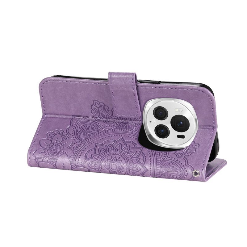 Kolla In Vårt Honor Magic 6 Pro 5G Plånboksfodral, Med Ett Hopfällbart Stativ Och Ett Unikt Blommönster.