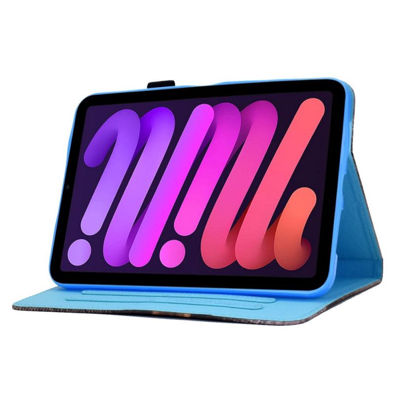 Din iPad Mini 6 (2021) är helt skyddad med detta fodral i konstläder dekorerat med fjärilar på en grön bakgrund.