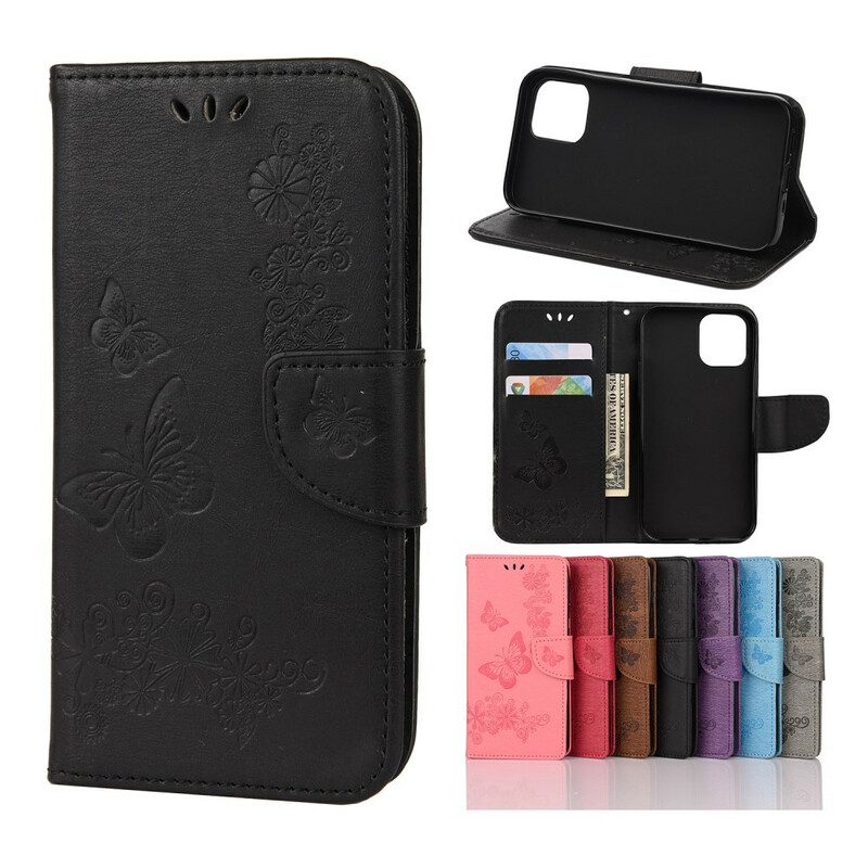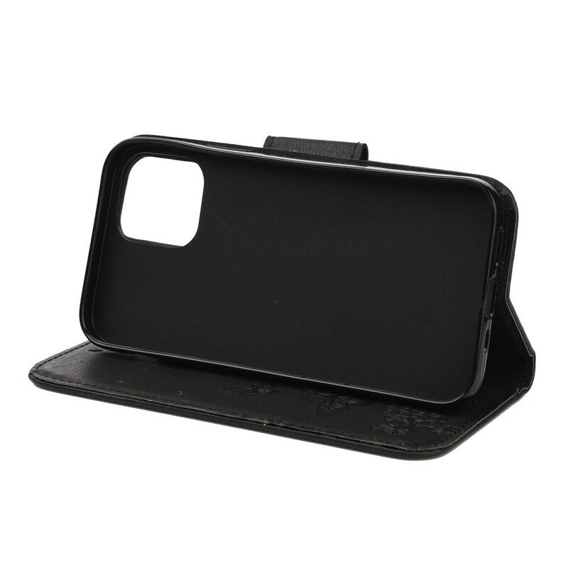 Din iPhone 12 Mini är skyddad som en plånbok med detta fodral i läderimitation fyllt med fantastiska fjärilar, som kommer med en avtagbar rem.