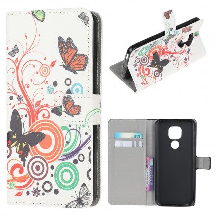 Fodral För Moto G9 Play Fjärilar Och Blommor