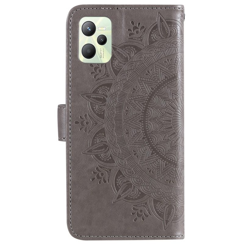 Här är ett läderimitation och silikonfodral med en rem och dekorerad med en tryckt mandala för att garantera säkerheten för din Realme C35.