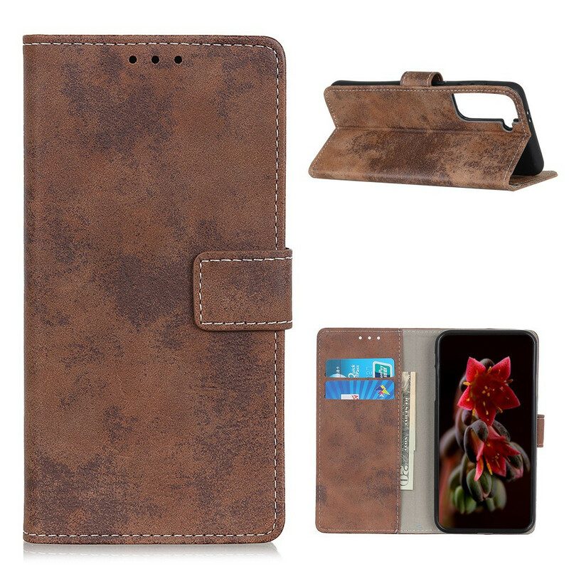 Premiumfodralet i konstläder ger vintageskydd för din Samsung Galaxy S21 Plus 5G samtidigt som det fungerar som en plånbok och handsfree-ställ.