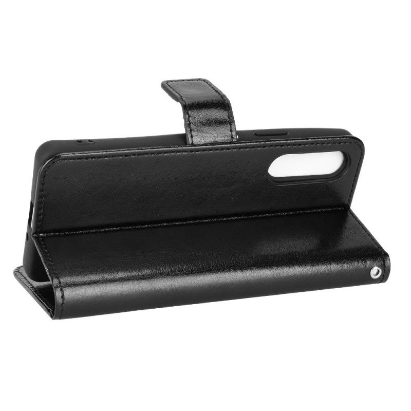 Det flashiga fodralet i läderimitation, med rem, ger optimalt skydd för Sony Xperia 10 IV samtidigt som det fungerar som plånbok och stöd.