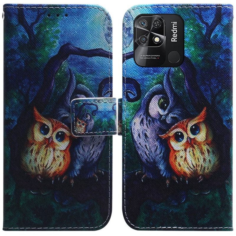 Painting Owls-skyddet är ett mycket motståndskraftigt skydd för Xiaomi Redmi 10C och fungerar även som en plånbok.
