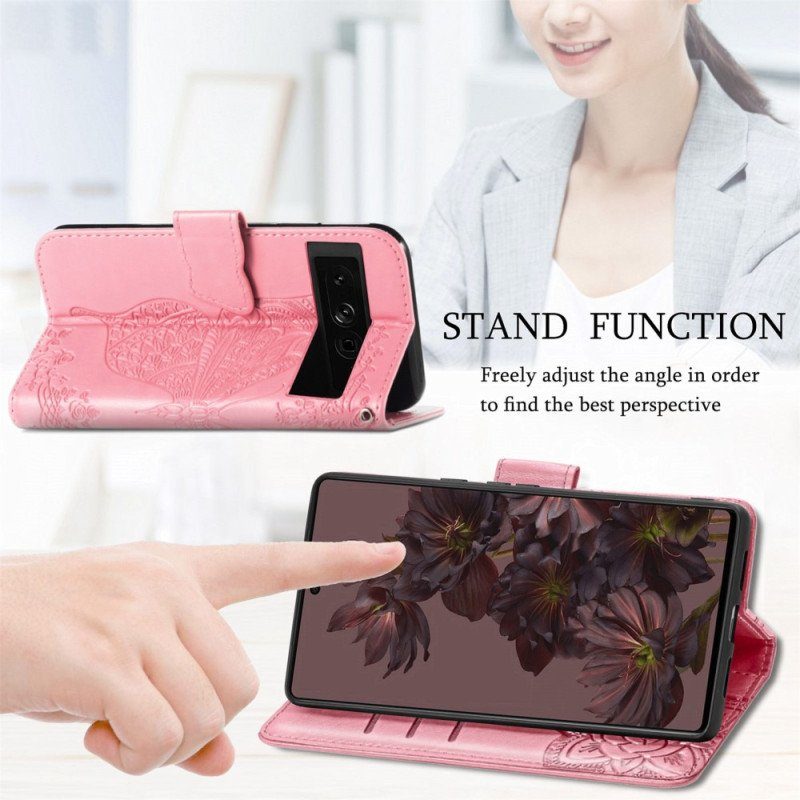 Butterfly Baroque-Skalet Skyddar Hela Google Pixel 7 Pro Och Levereras Med En Rem.