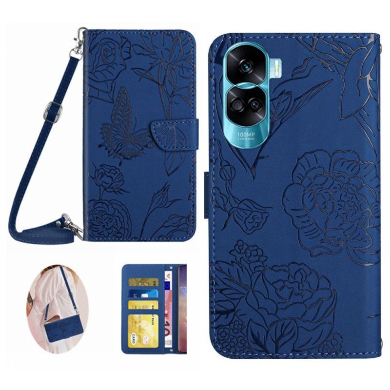 Höljet I Konstläder Med Fjärilsmönster Kommer Med En Justerbar Axelrem För Att Enkelt Bära Honor 90 Lite.