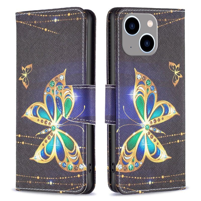 Det Här Skalet Dekorerat Med En Guldfjäril Är Idealiskt För Din Iphone 15 Plus Och Fungerar Som En Plånbok.