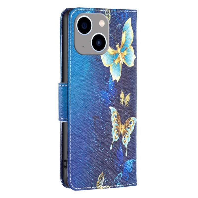 Fodral iPhone 15 Pro Fjärilar På Blå Bakgrund