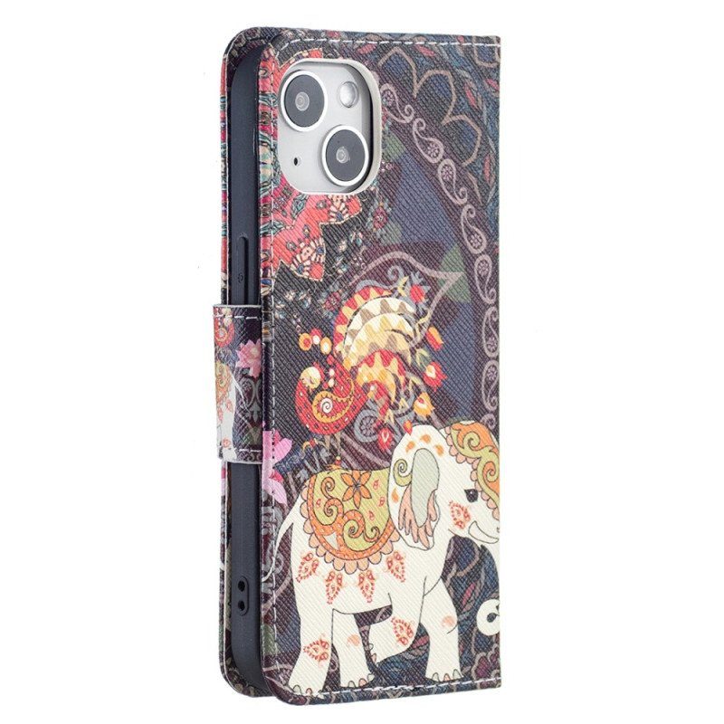 Detta Tribal Elephant-Skal Skyddar Elegant Din Iphone 15 Samtidigt Som Det Fungerar Som En Plånbok.