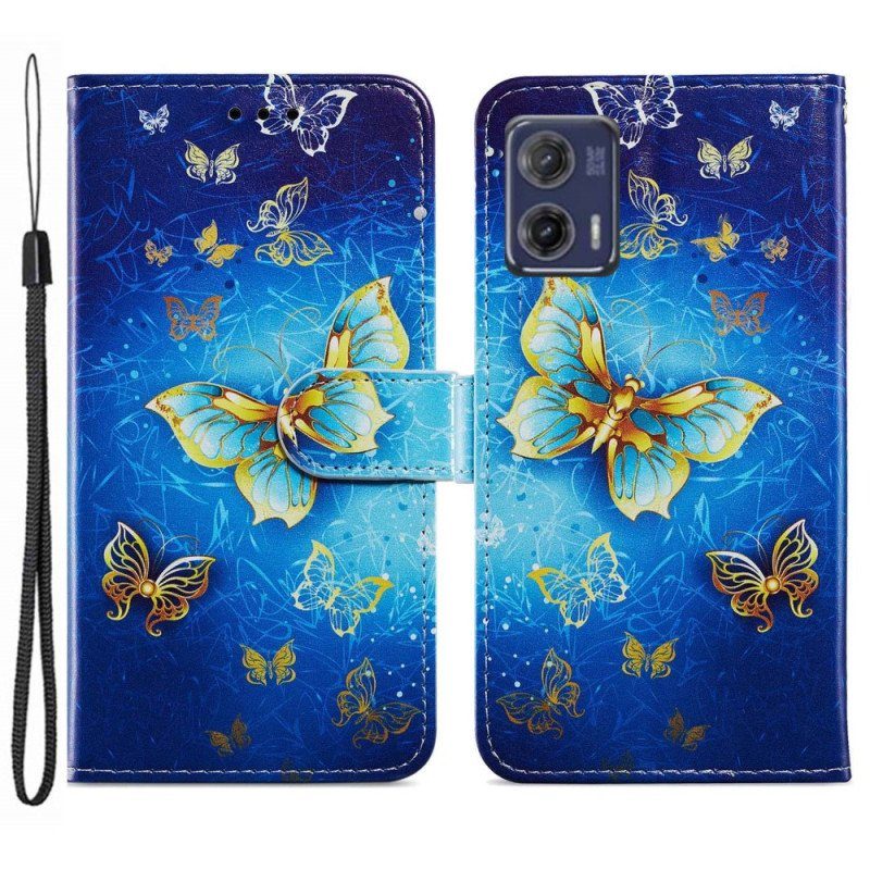 Fodral Moto G73 5G Med Kedjar Gyllene Fjärilar Med Rem