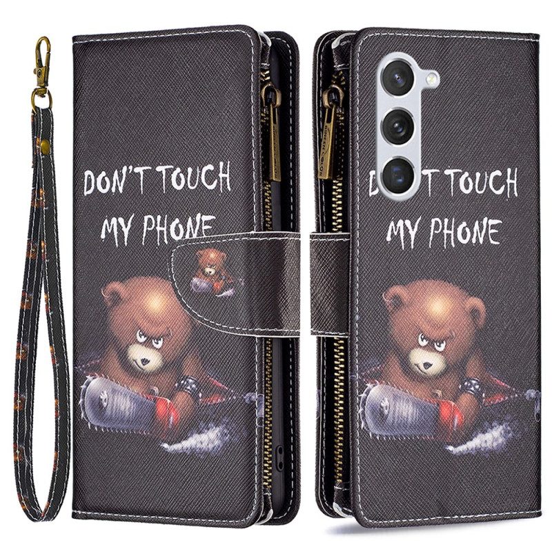 Upptäck Vårt Dangerous Bear Don'T Touch My Phone-Fodral För Samsung Galaxy S24 5G, Med En Plånbok Med Dragkedja Och Stöd.