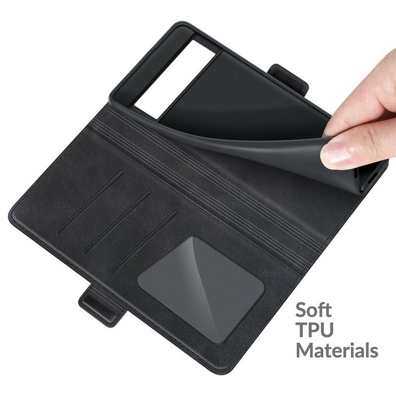 Höljet i konstläder till din Google Pixel 6 ger skydd, kortplatser och dubbelstängning.