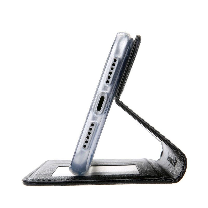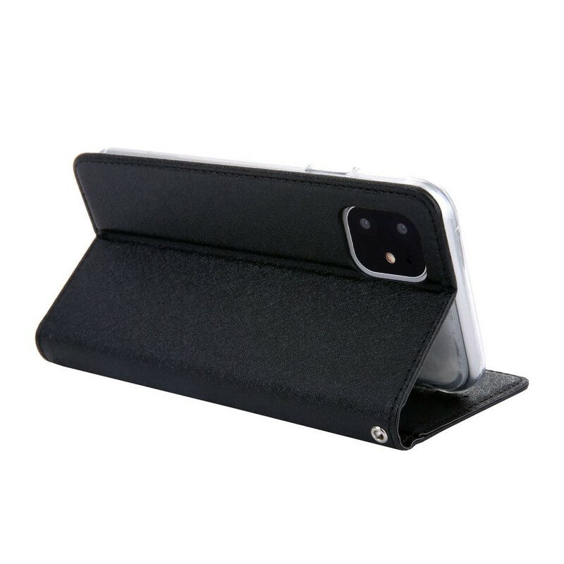 Skydda din iPhone 11 på ett slankt och motståndskraftigt sätt med detta Silk Texture Leather Effect-fodral, Flip Cover-stil (med integrerat spänne).