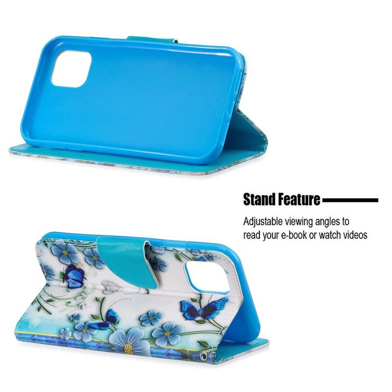 Folio-fodral För iPhone 11 Med Kedjar Fjärilar Och Blommor Med Blå Rem