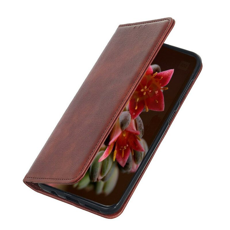 Skydda din iPhone 13 Pro på ett elegant och motståndskraftigt sätt med detta Flip Cover-stil lychee delat läderfodral (med integrerat lås).
