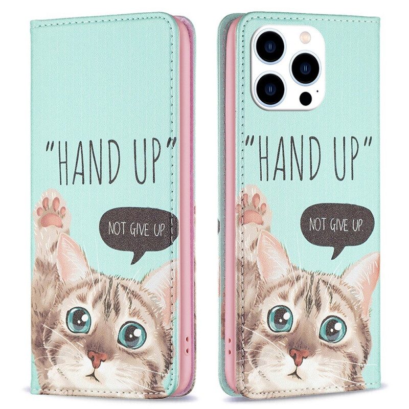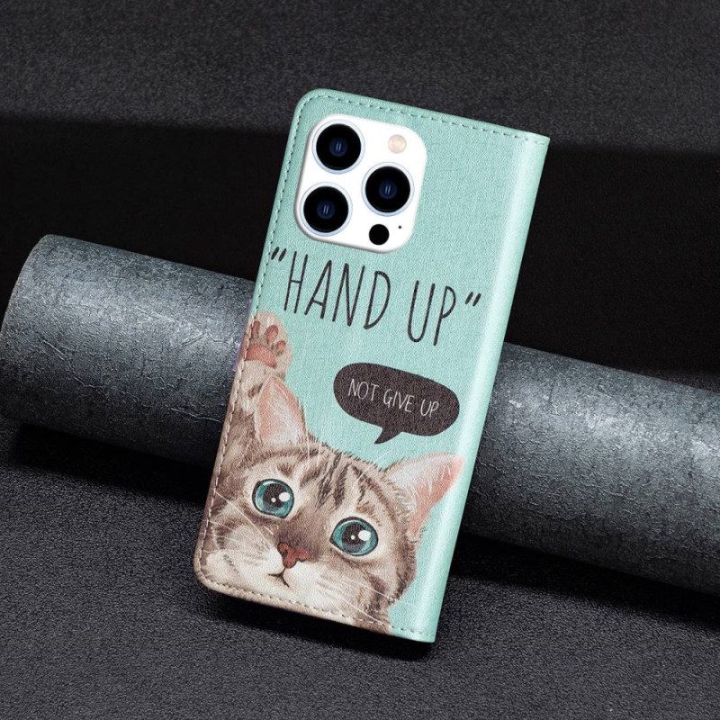 Folio-fodral För iPhone 14 Pro Läderfodral Hand Up