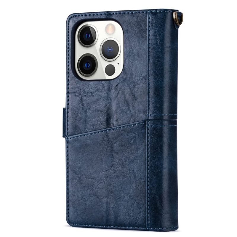 Här är ett multifunktionsfodral i vintagestil för iPhone 14 Pro Max som har många korthållare.