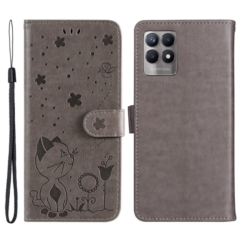 Folio-fodral För Realme 8i Med Kedjar Thong Cat And Bee