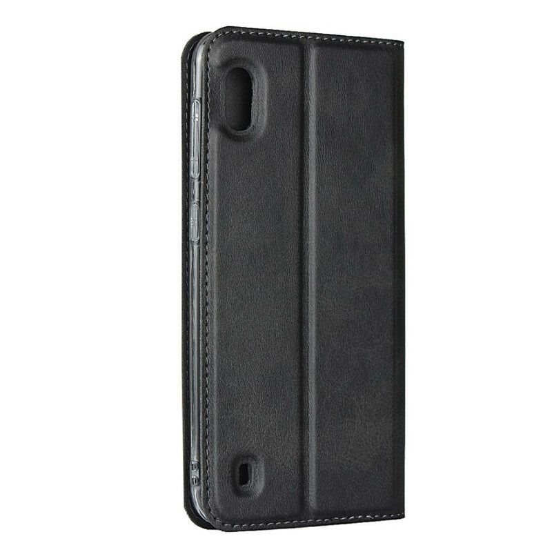 Säkra din Samsung Galaxy A10 på ett smalt och motståndskraftigt sätt med detta Class-fodral, i läderimitation, Flip Cover-stil (med integrerat spänne).