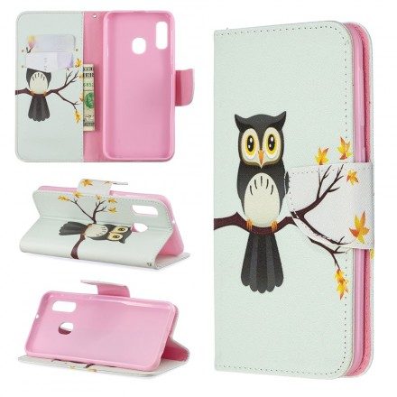 Folio-fodral För Samsung Galaxy A20e Uggla Uppflugen På En Gren