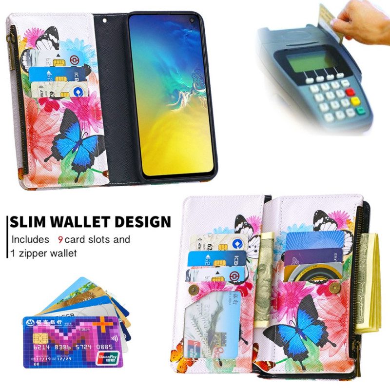 Följet Butterflies Zipped Pocket säkrar och erbjuder många alternativ för Samsung Galaxy S10e.
