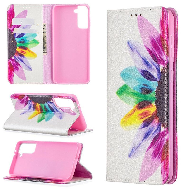 Din Samsung Galaxy S21 Plus 5G är perfekt skyddad med detta flipskydd dekorerat med en magnifik färgglad blomma.