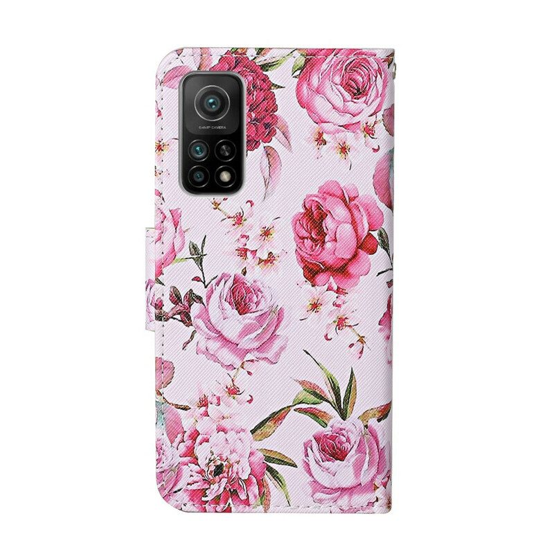 Folio-fodral För Xiaomi Mi 10T / 10T Pro Mästerliga Blommor Med Rem