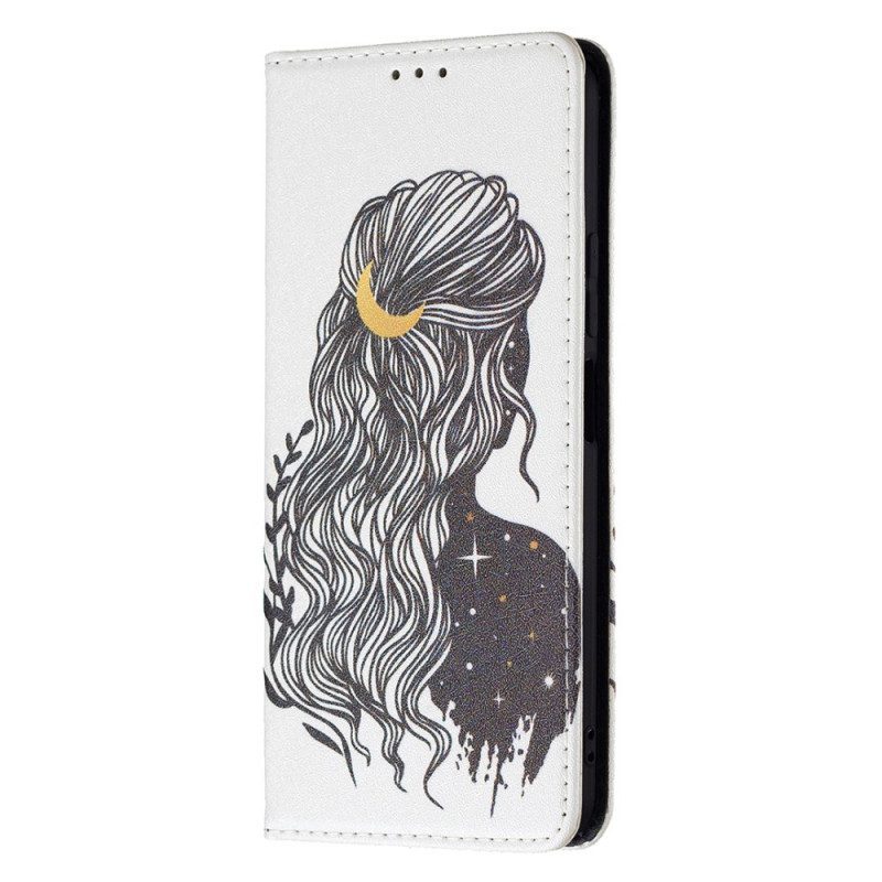Skydda hela din Xiaomi 11 Lite 5G NE/Mi 11 Lite 4G/5G med detta flipskydd dekorerat med en ung tjej med vackert hår.