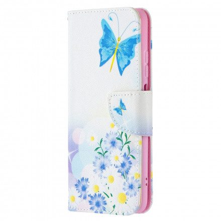 Folio-fodral För Xiaomi Redmi Note 10 / 10S Målade Fjärilar Och Blommor