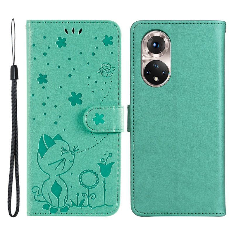 Folio-fodral Honor 50 Med Kedjar Katt Och Bi Med Snodd