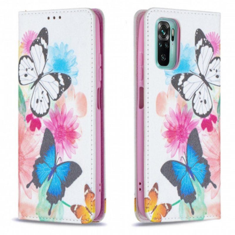 Colorful Butterflies Flip Cover (Med Integrerat Spänne) Är Perfekt För Att Säkra Alla Dina Xiaomi Redmi Note 10/Note 10S/Poco M5S.