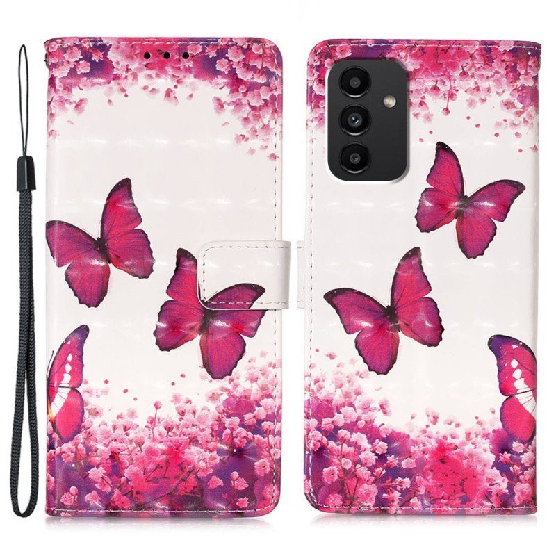 Folio-fodral Samsung Galaxy A54 5G Med Kedjar Flight Of Butterflies I Lanyard