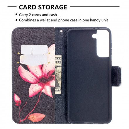 Läderfodral För Samsung Galaxy S21 Plus 5G Rosa Blomma
