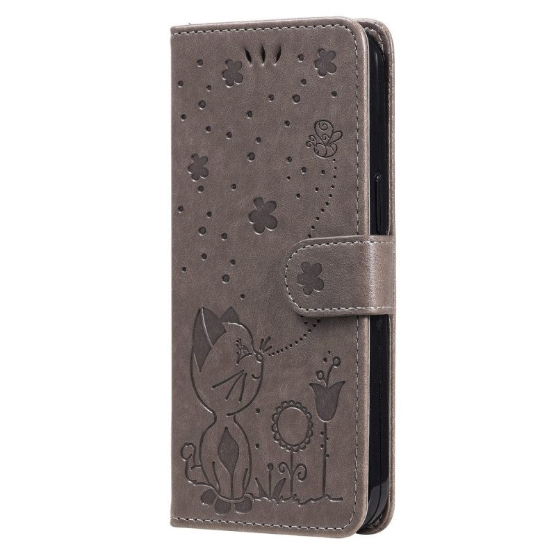 Läderfodral För Xiaomi Redmi 10C Med Kedjar Katt Och Bin I Rem