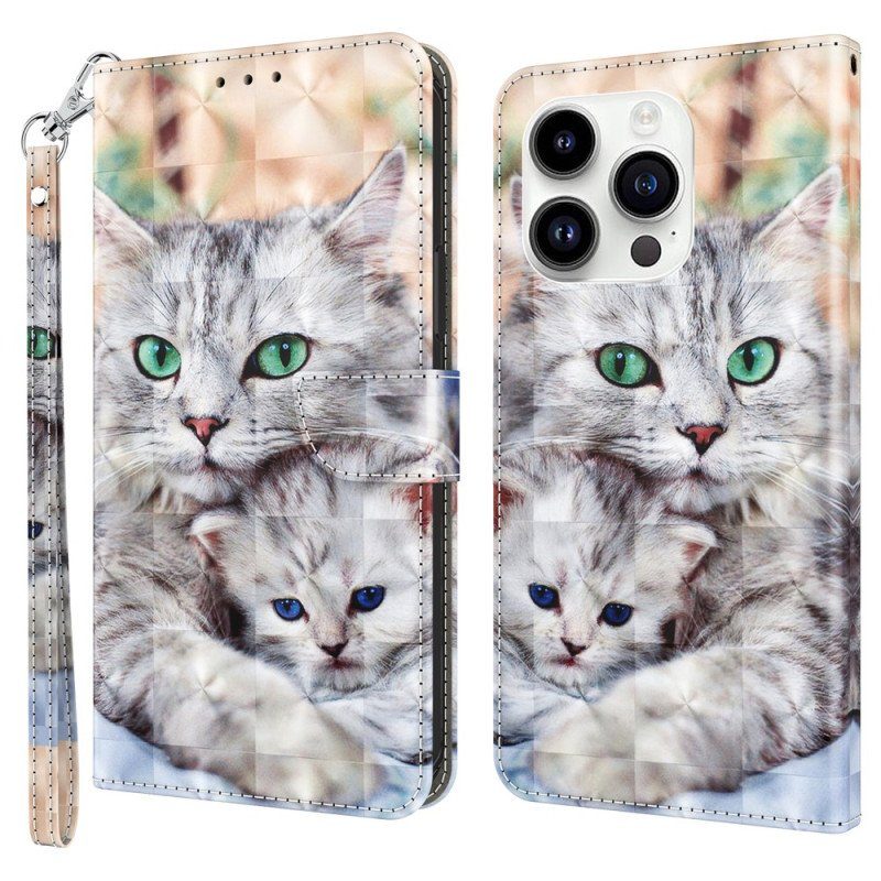 Läderfodral iPhone 15 Pro Med Kedjar Ömma Stringkatter