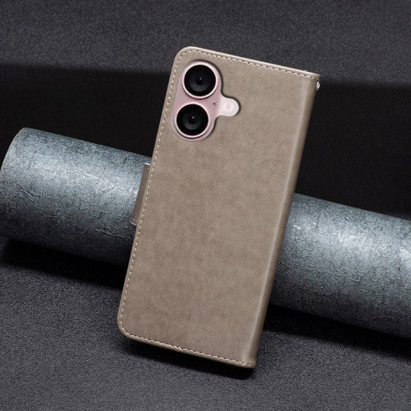 Läderfodral iPhone 16 Telefonfodral Lanyardfjärilar