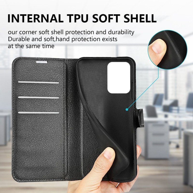 Höljet Classic Litchi Leather Effect Skyddar Hela Xiaomi Redmi Note 12/Poco X5 5G Och Fungerar Som Ett Tillbehör Tack Vare Dess Plånboksfunktioner.
