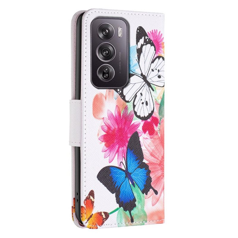 Läderskal Fodral Oppo Reno 12 Pro 5g Två Fjärilar