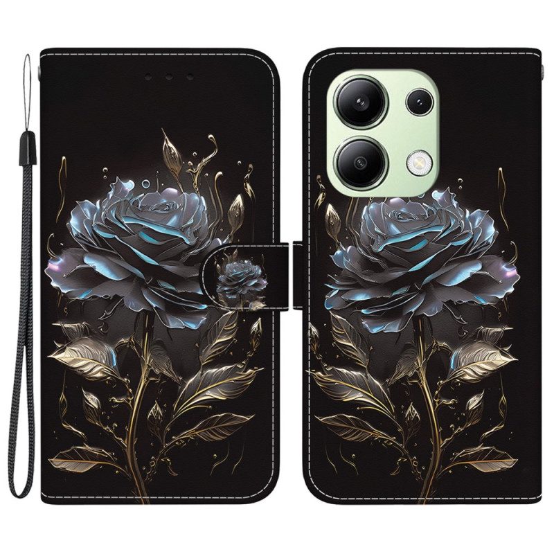 Läderskal Fodral Xiaomi Redmi Note 13 4g Svart Ros Med Rem