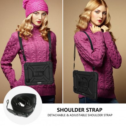 Din iPad Pro 11" (2021) (2020) (2018) är perfekt skyddad med detta Resistance Max multifunktionella skal utrustat med ett handsfree-stöd, en rem och en axelrem.