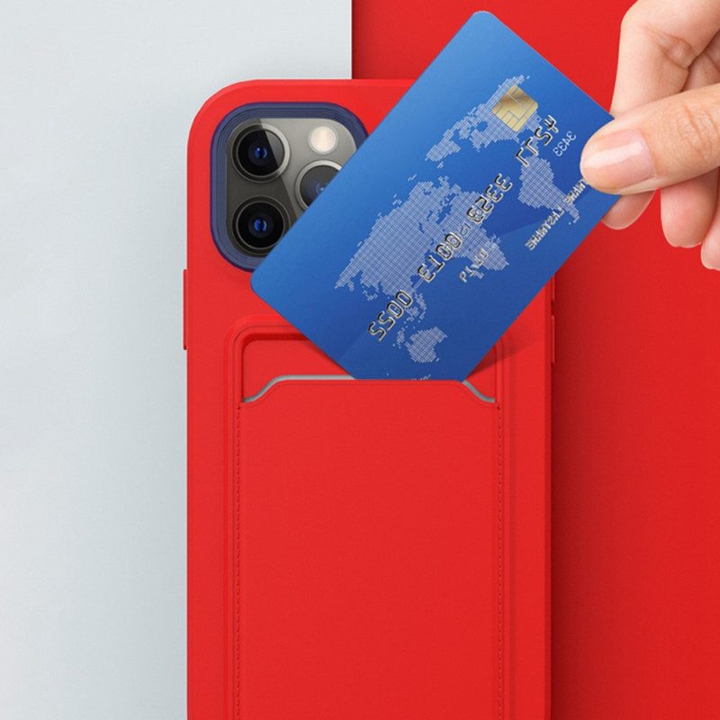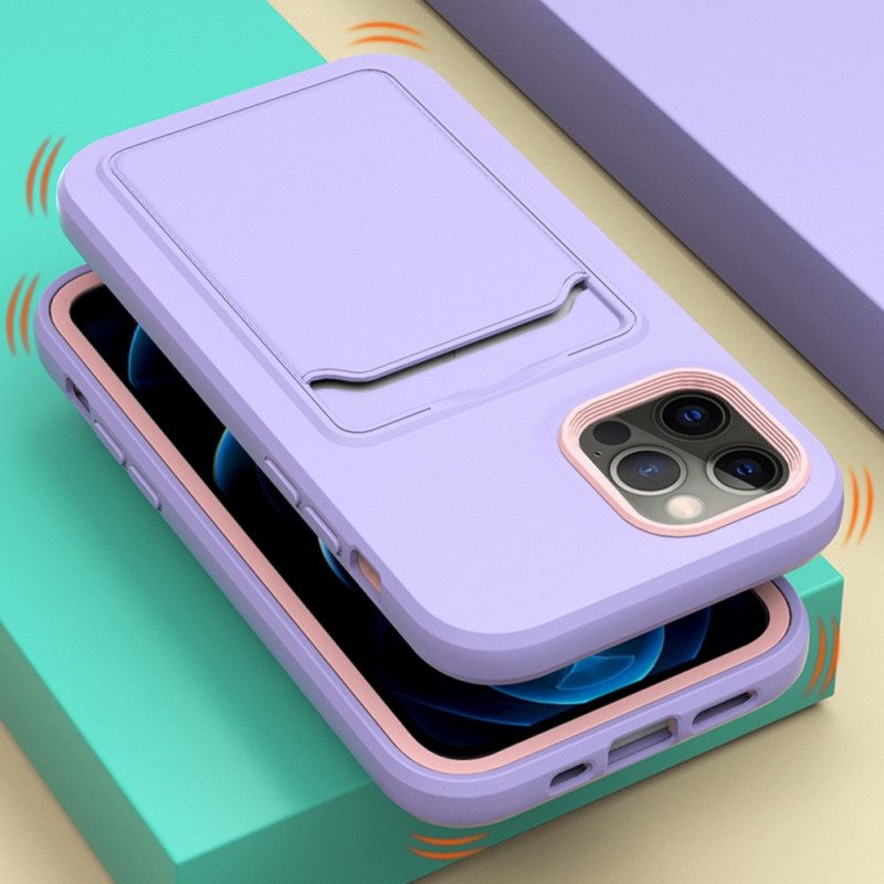 Skydda din iPhone 14 Pro på ett säkert och praktiskt sätt med detta tvåfärgade skal försett med en korthållare.