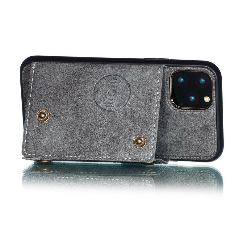 Ett fodral i konstläder designat för att säkra din iPhone 11 Pro Max genom att erbjuda en version av plånboken integrerad i fodralet.