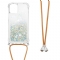 Detta silikonfodral dekorerat med glitter kommer med en kardong för att bära din iPhone 13 som du vill.