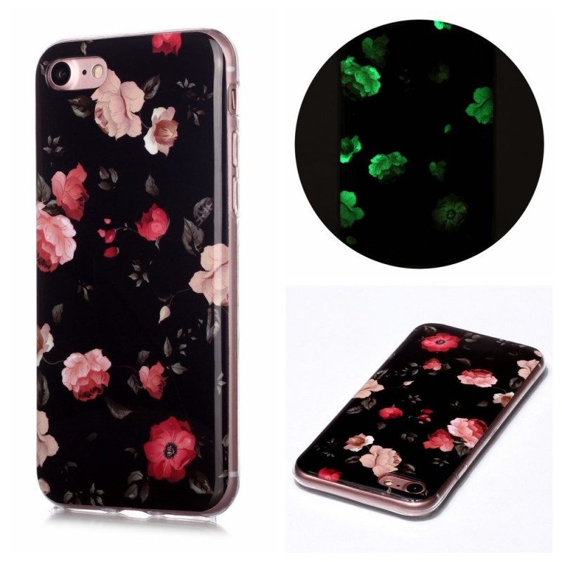 Detta fluorescerande skal dekorerat med blommor kommer att effektivt och ömtåligt skydda din iPhone SE 3 / SE 2 / 8 / 7.