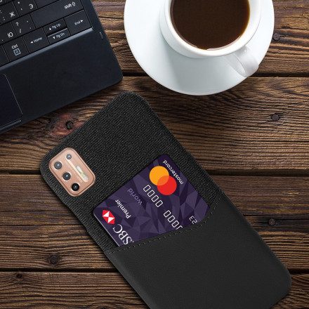 KSQ har designat detta magnifika fodral i läderimitation och tyg, med en integrerad korthållare, speciellt för Moto G9 Plus.