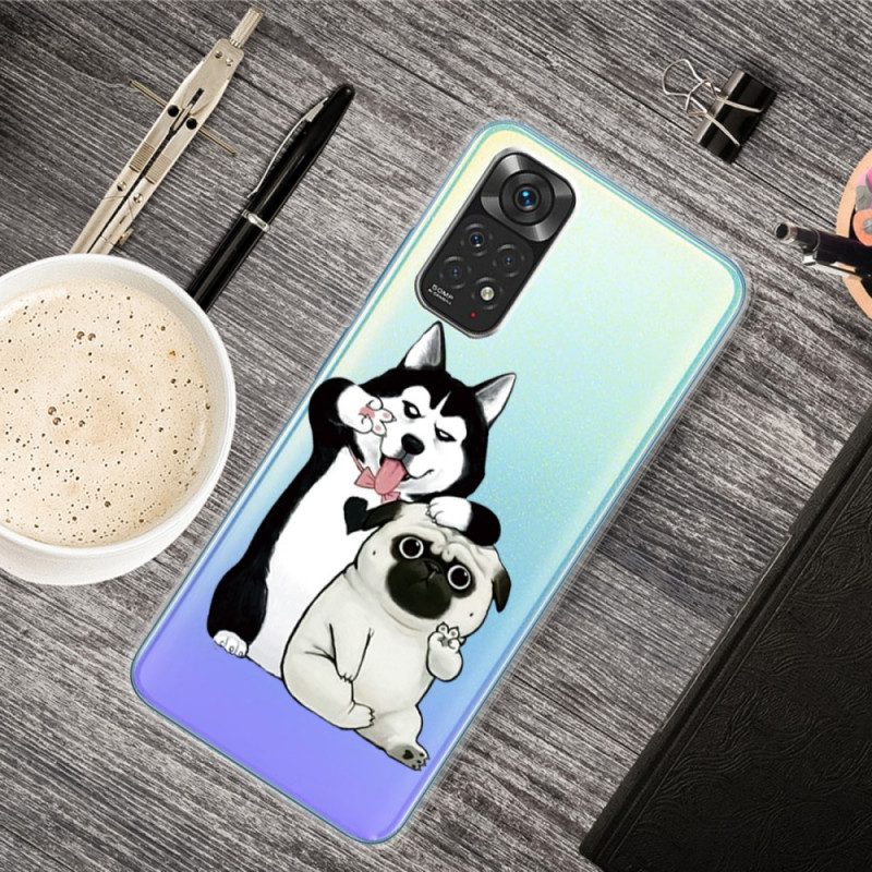 Roliga hundar på ett genomskinligt silikonfodral för att skydda din Xiaomi Redmi Note 11/11s på ett roligt och personligt sätt.