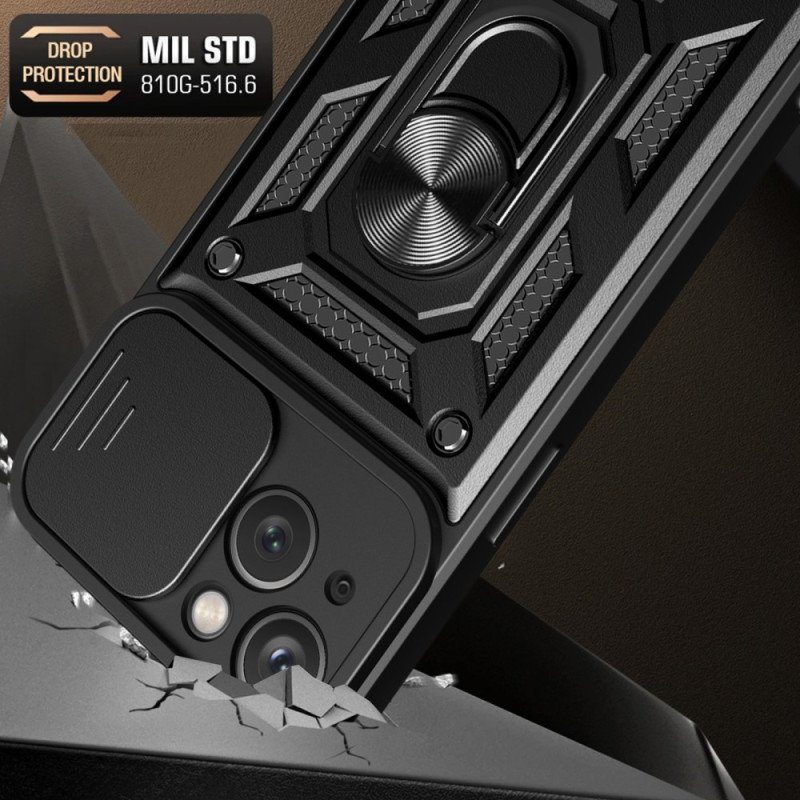 Installera Det Här Fodralet Utrustat Med En Stödring Och Ett Glidande Linsskydd På Din Iphone 15.