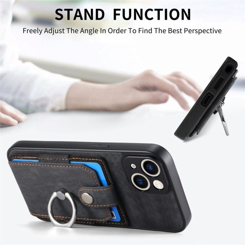 Skal iPhone 15 Vintage Med Ringhållare Och Korthållare