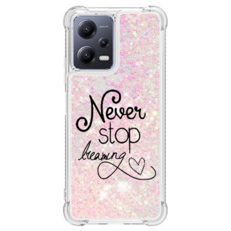 Din Xiaomi Redmi Note 12 5G/Poco X5 5G Är En Dröm Som Går I Uppfyllelse Med Detta Never Stop Dreaming Glitterfodral.