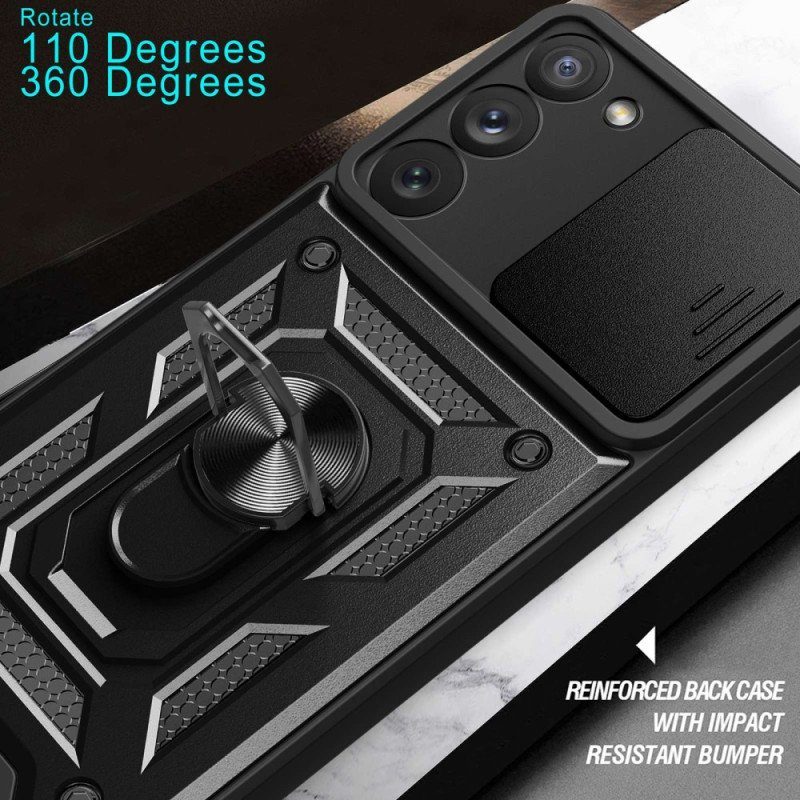 Skydda Din Samsung Galaxy S23 5G Med Detta Superskydd Utrustad Med En Stödring Och Ett Linsskydd Med Dragkedja.